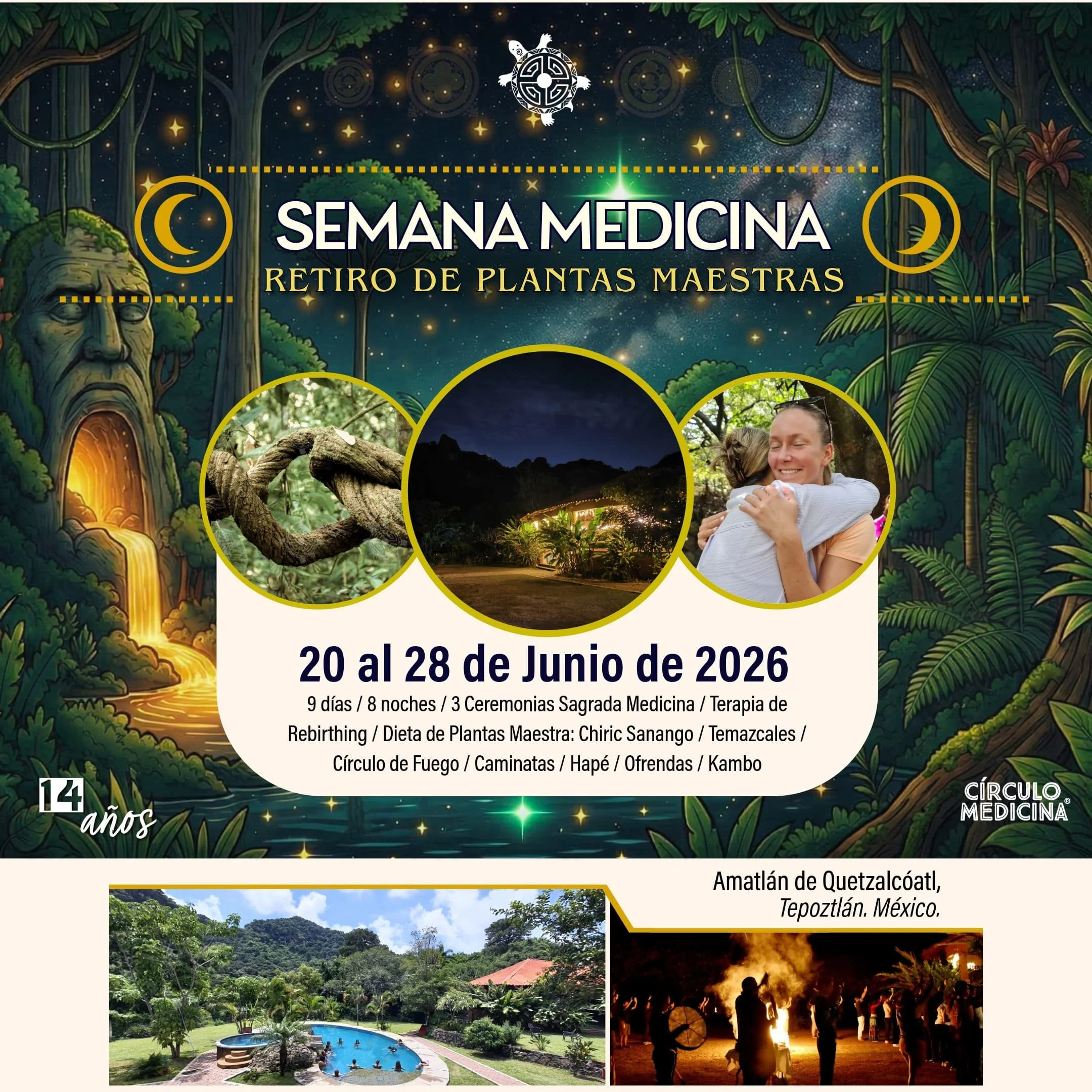 Es un evento anual que relizamos desde el año 2018, con el que confirmamos que en este tiempo de nueve días y ocho noches, es propicio para vivir un proceso completo de inmersión a través de la medicina de la Ayahuasca, la Dieta de Plantas (Chiric Sanango), el contacto de la Naturaleza con la Medicina del Temazcal.